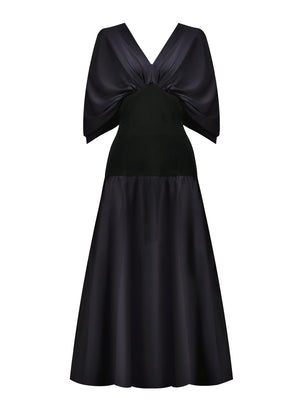 فستان كريب باللونين الأسود والأزرق الداكن مع كروسية