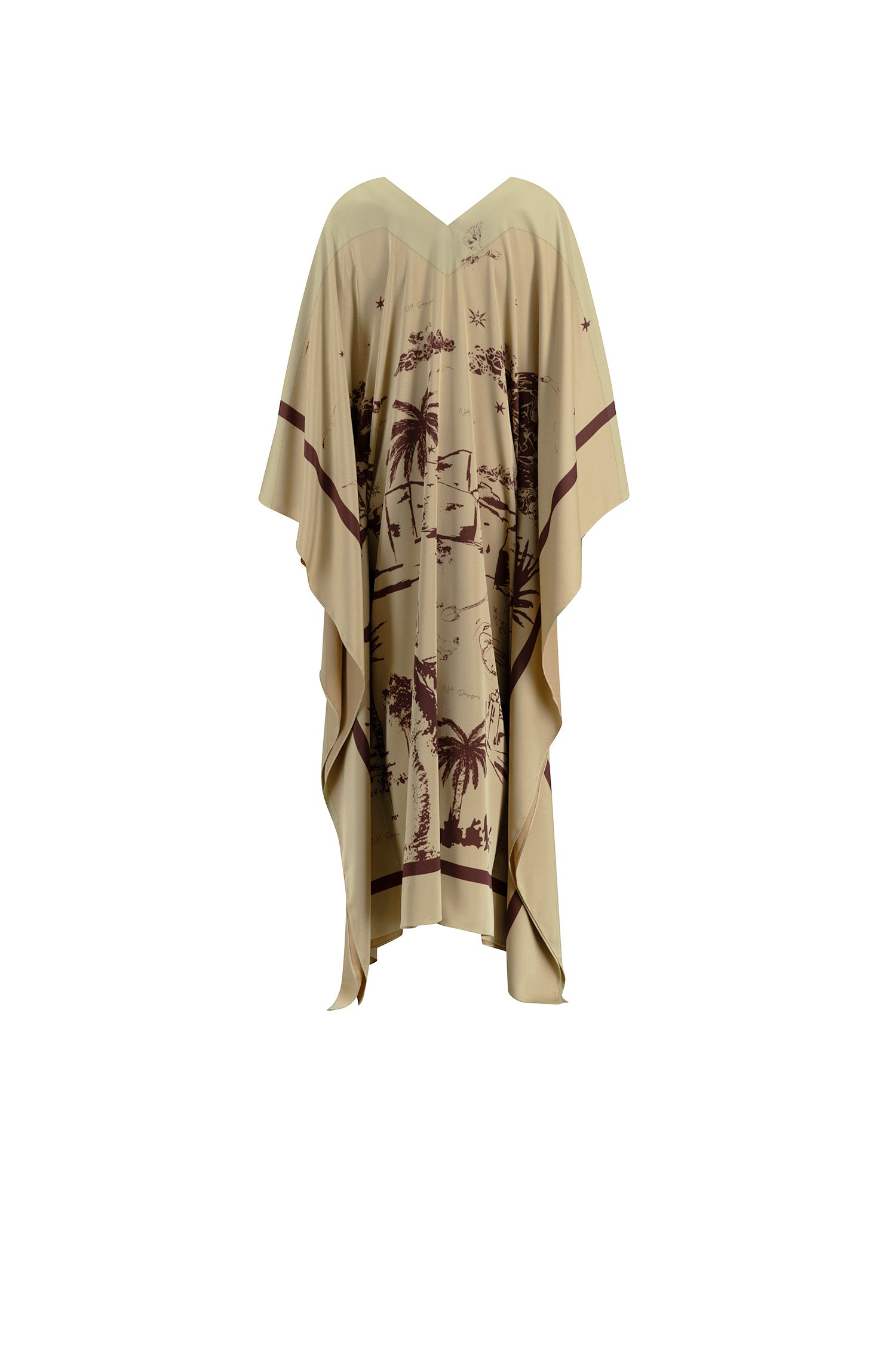 فستان بمزيج من الألوان الاخضر الزاهي والعنابي
