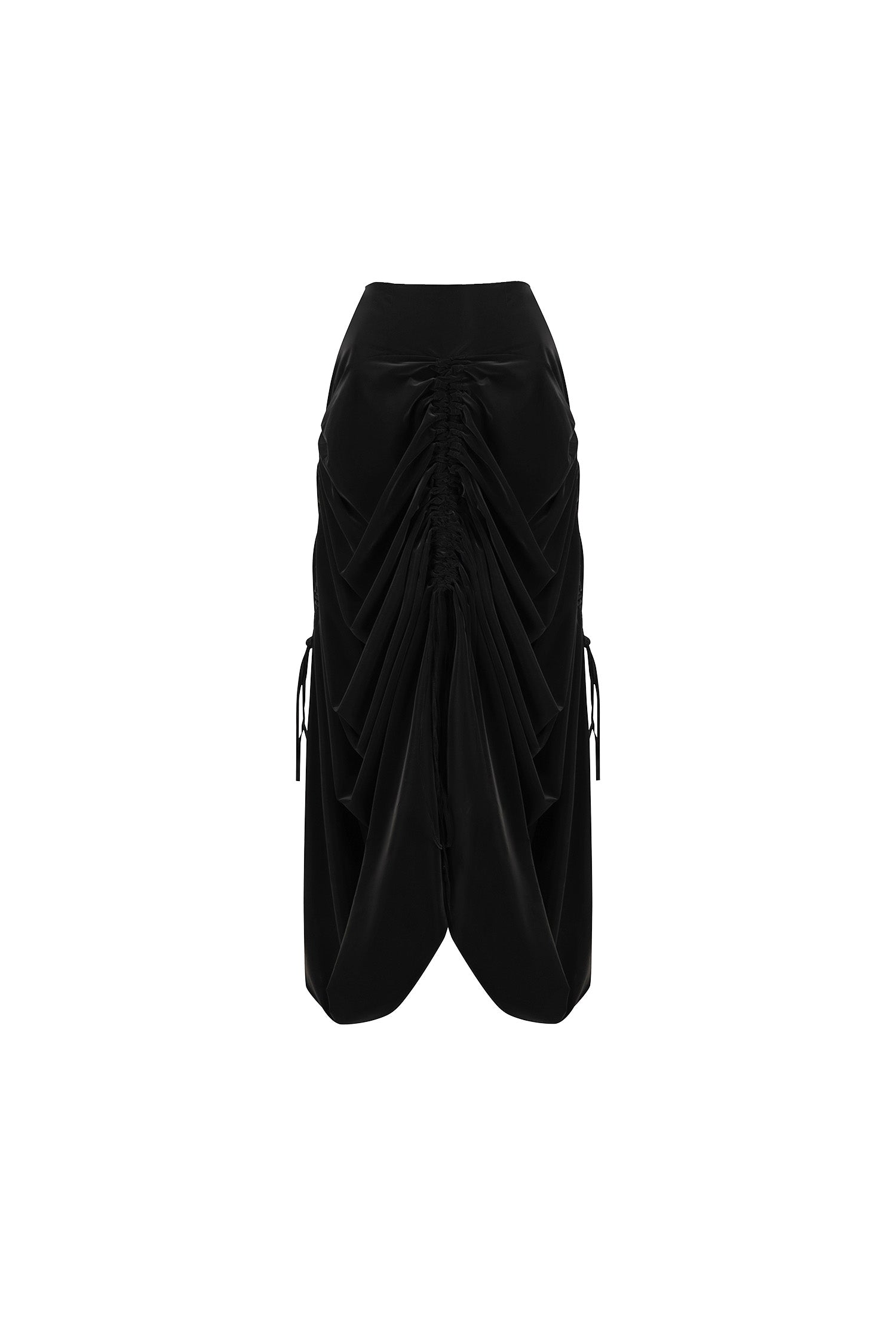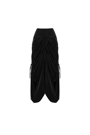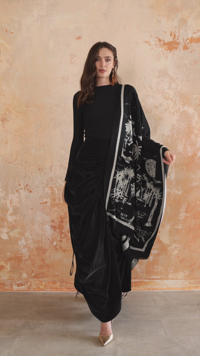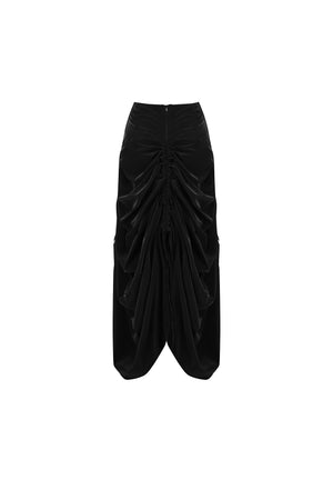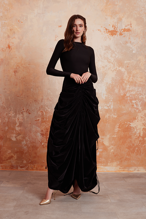 تنورة ماكسي سوداء بكسرات من قماش التفته