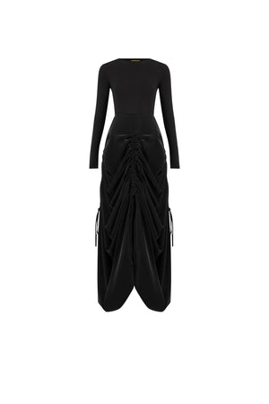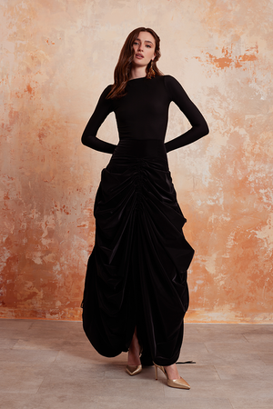 black maxi skirt with bodysuit top