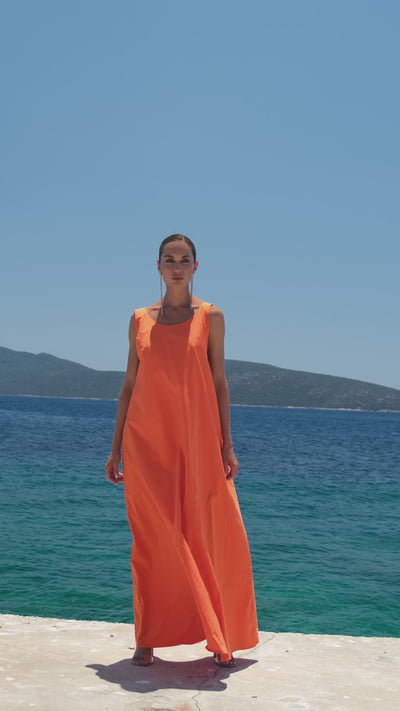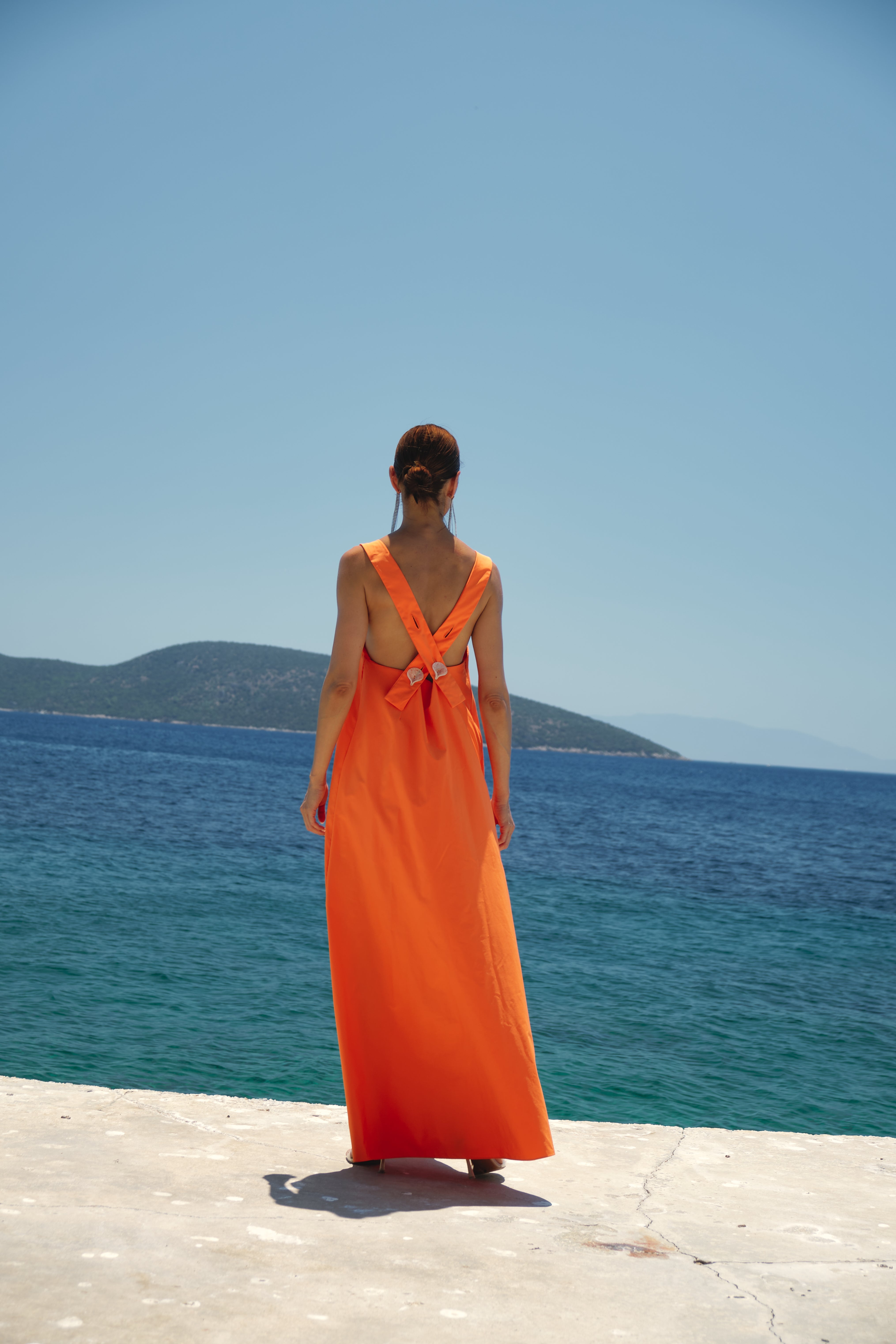 فستان بقصة مستقيمة بتدرجات برتقالية ، مزين بلمسات أصداف