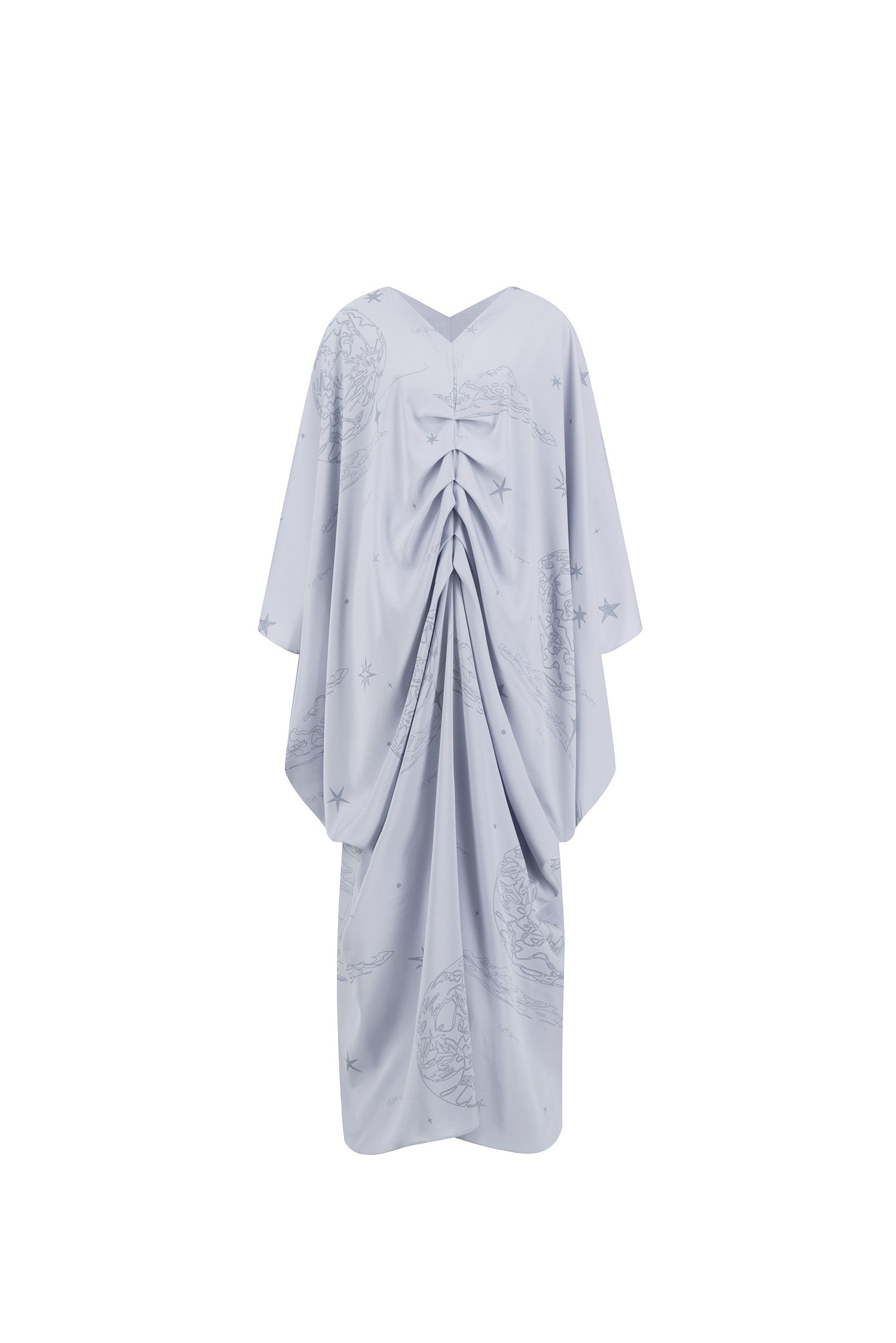 مصنوع من قماش الكريب المطبوع باللون الأزرق الفاتح